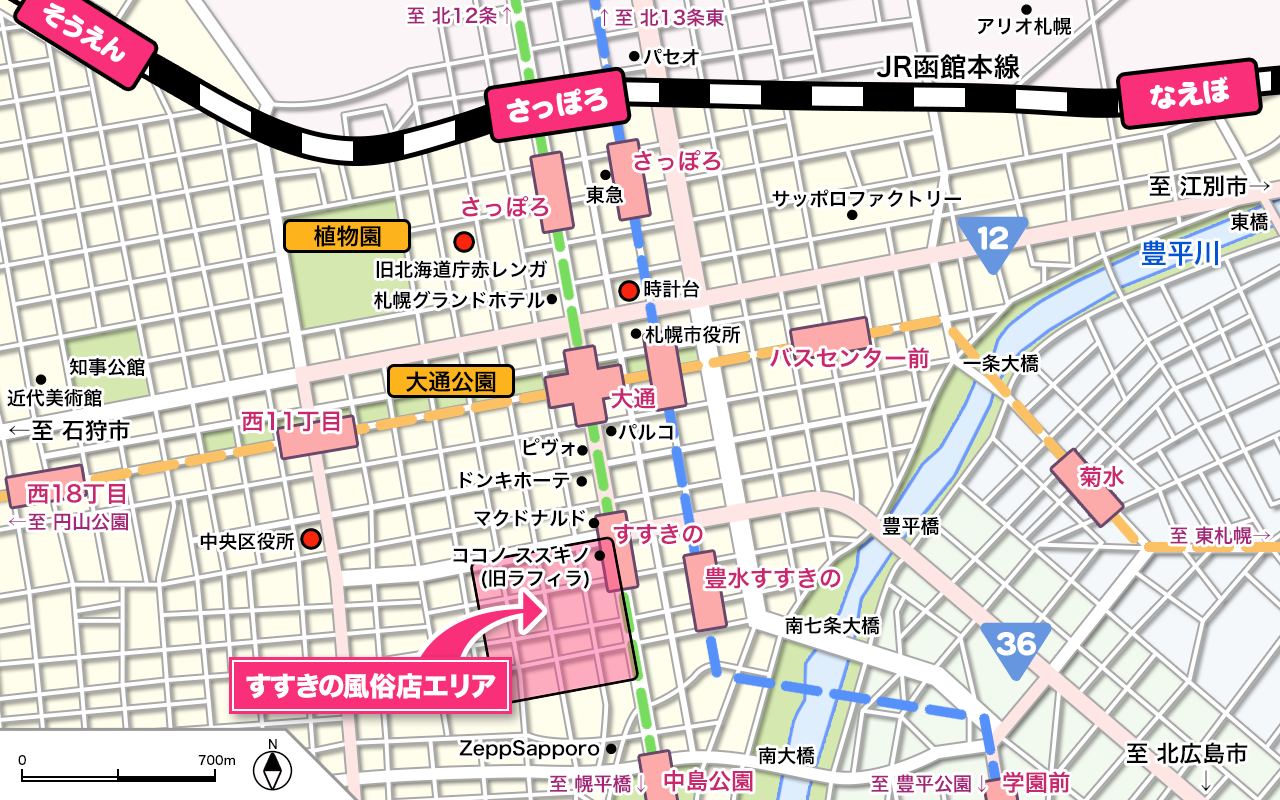 札幌駅周辺から「すすきの風俗店エリア」までのアクセス方法を、簡単な地図と共にご案内致します♪